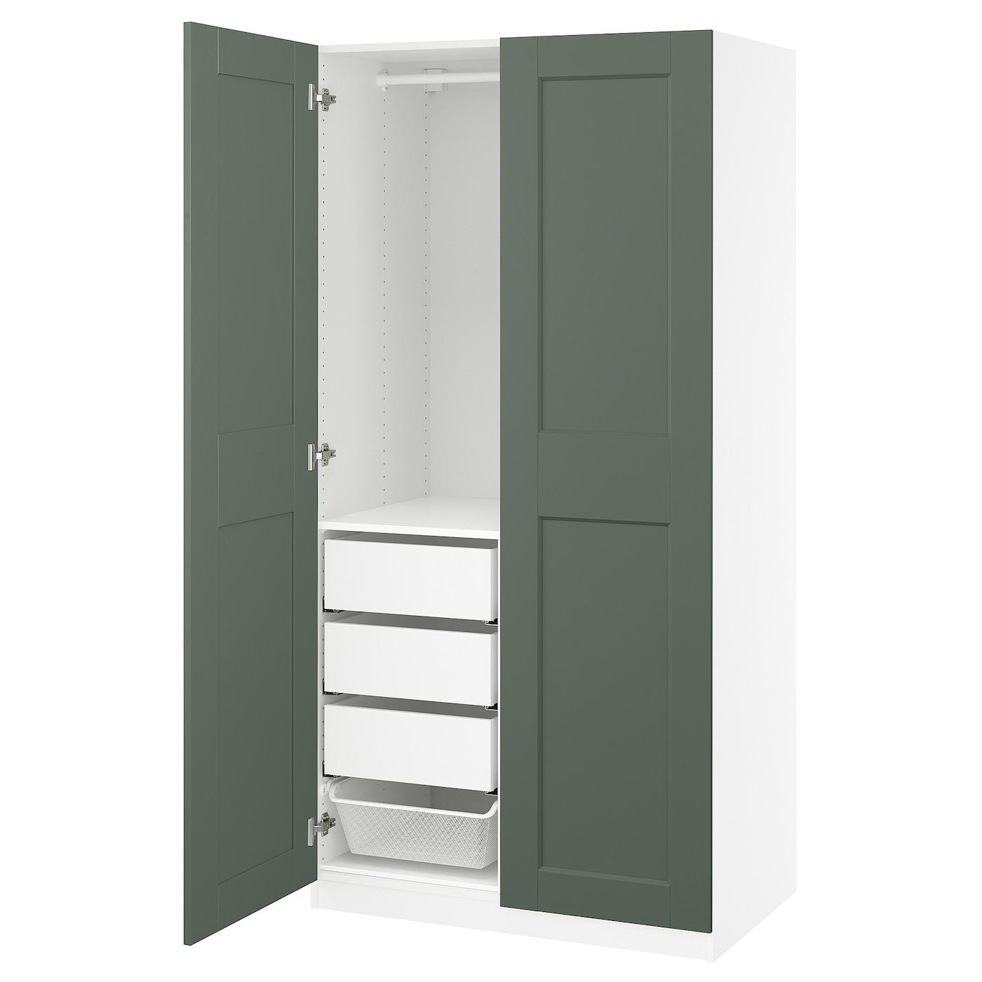 гардероб, комбинация, белый/серо-зеленый, 100x60x201 см