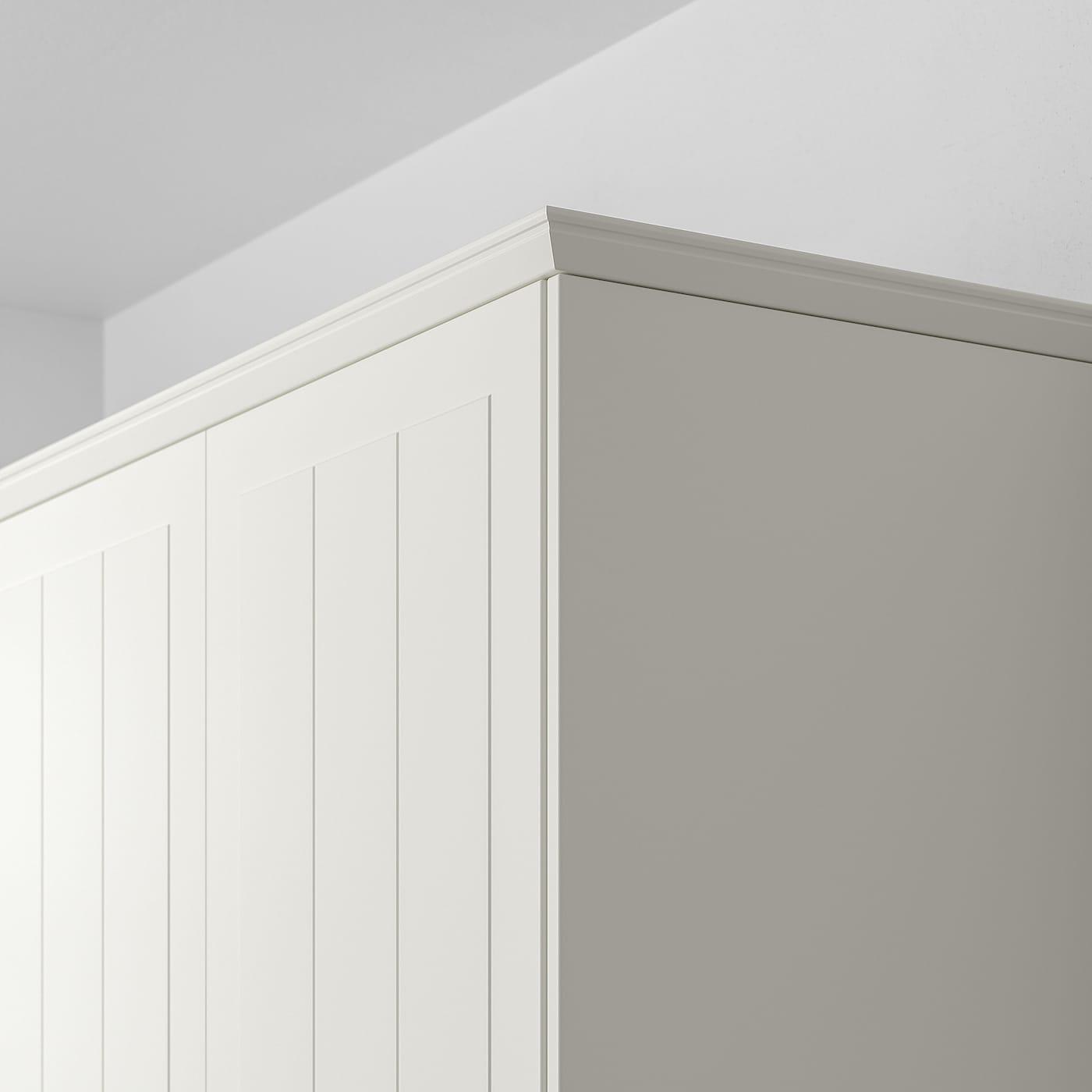 Можно использовать как декоративный карниз под навесными шкафами, чтобы спрятать подсветку, провода и розетки, а также установить на верхний край навесных и высоких шкафов.
