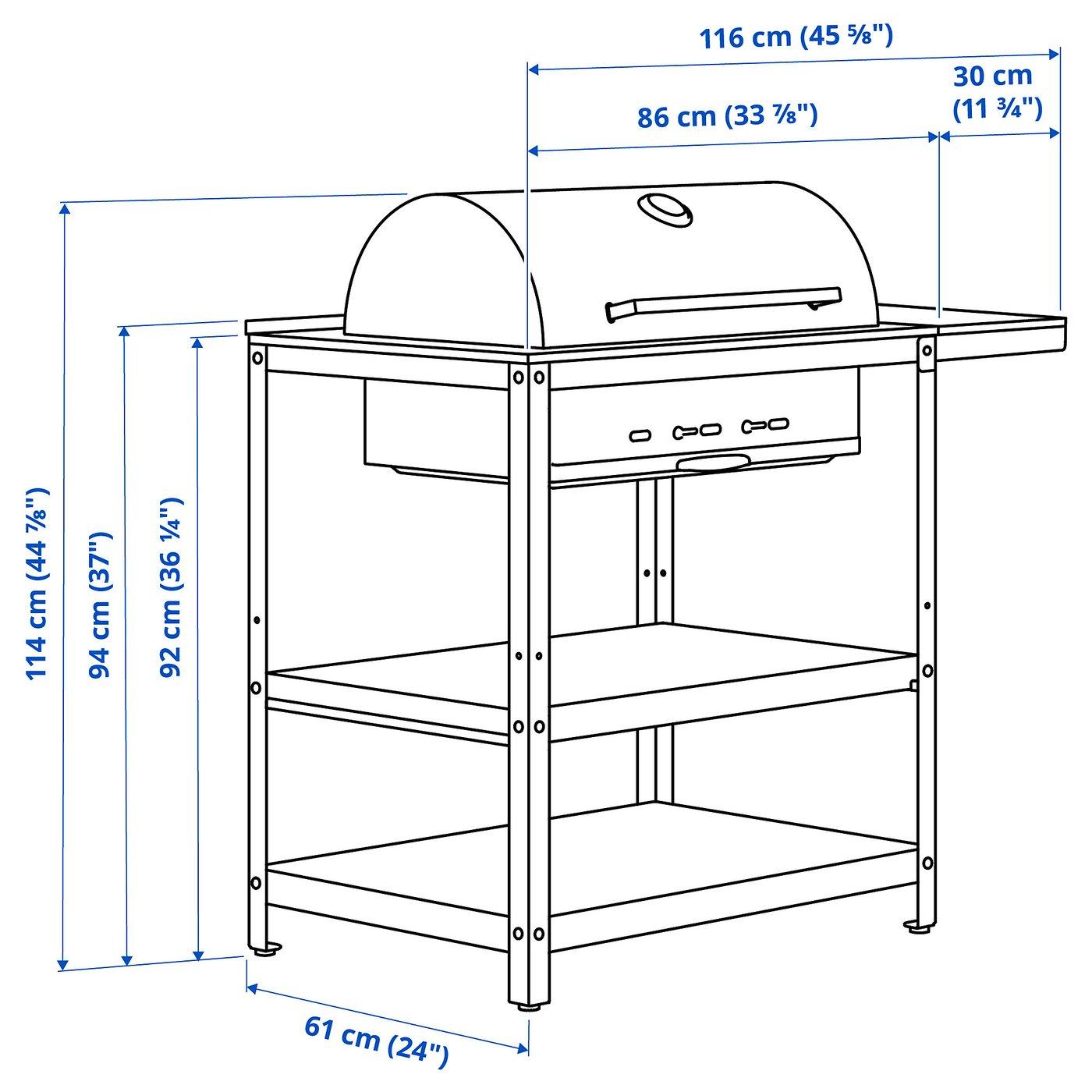 На полках под грилем есть место для кухонных принадлежностей и сервировочной посуды, чтобы сразу подать готовое блюдо на стол.