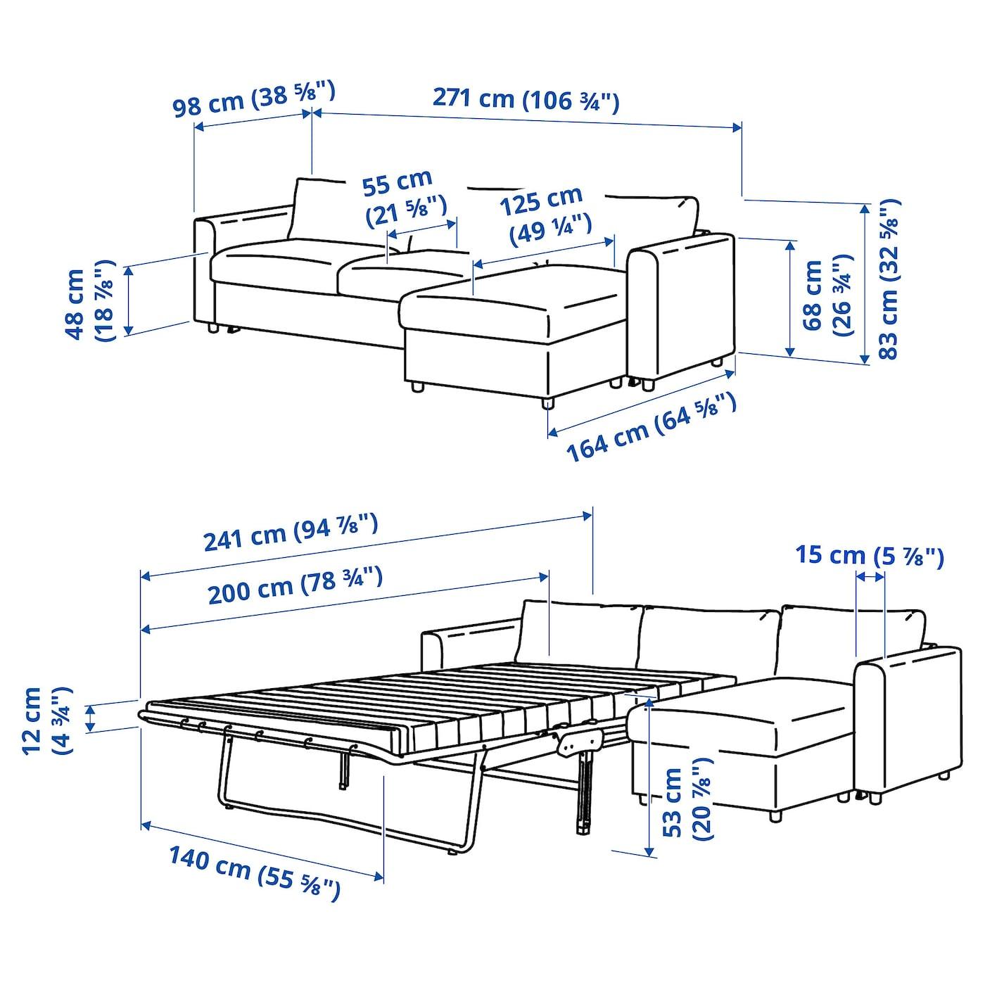 3-местный диван-кровать с козеткой, Hallarp бежевый dimensions