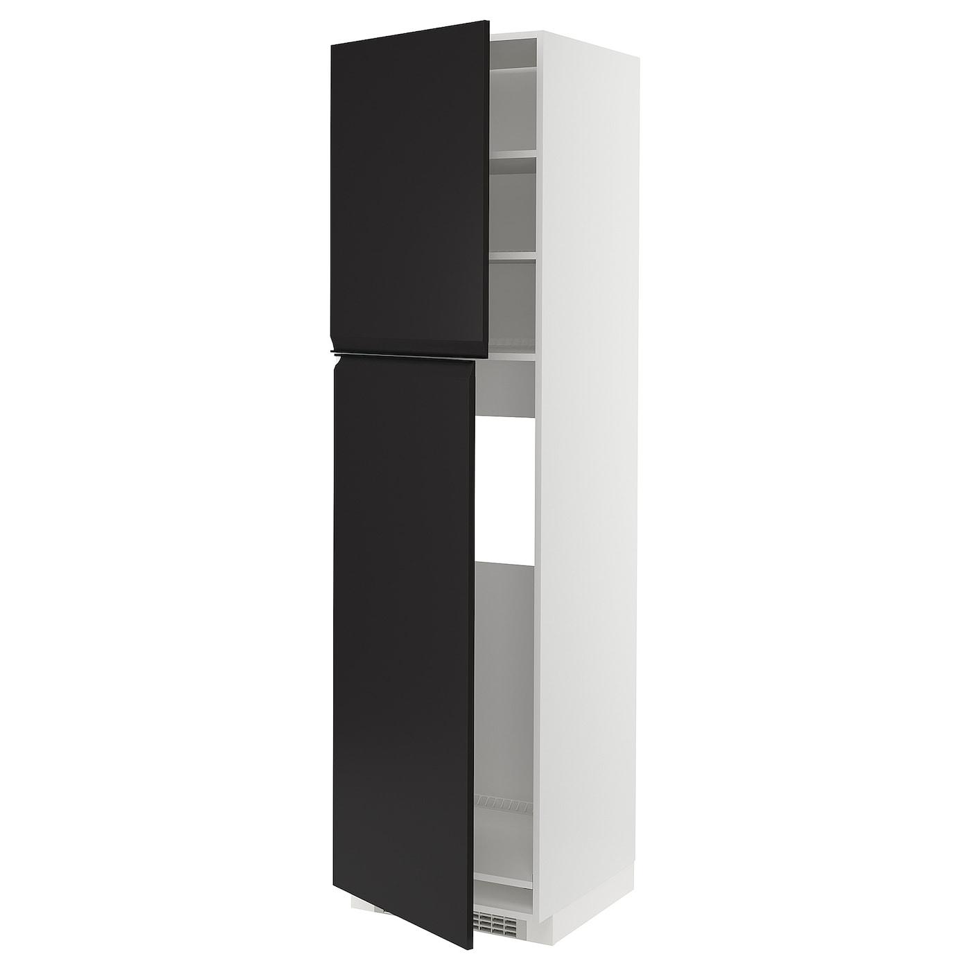 высокий шкаф д/холодильника/2дверцы, белый/Upplöv матовый антрацит, 60x60x220 см