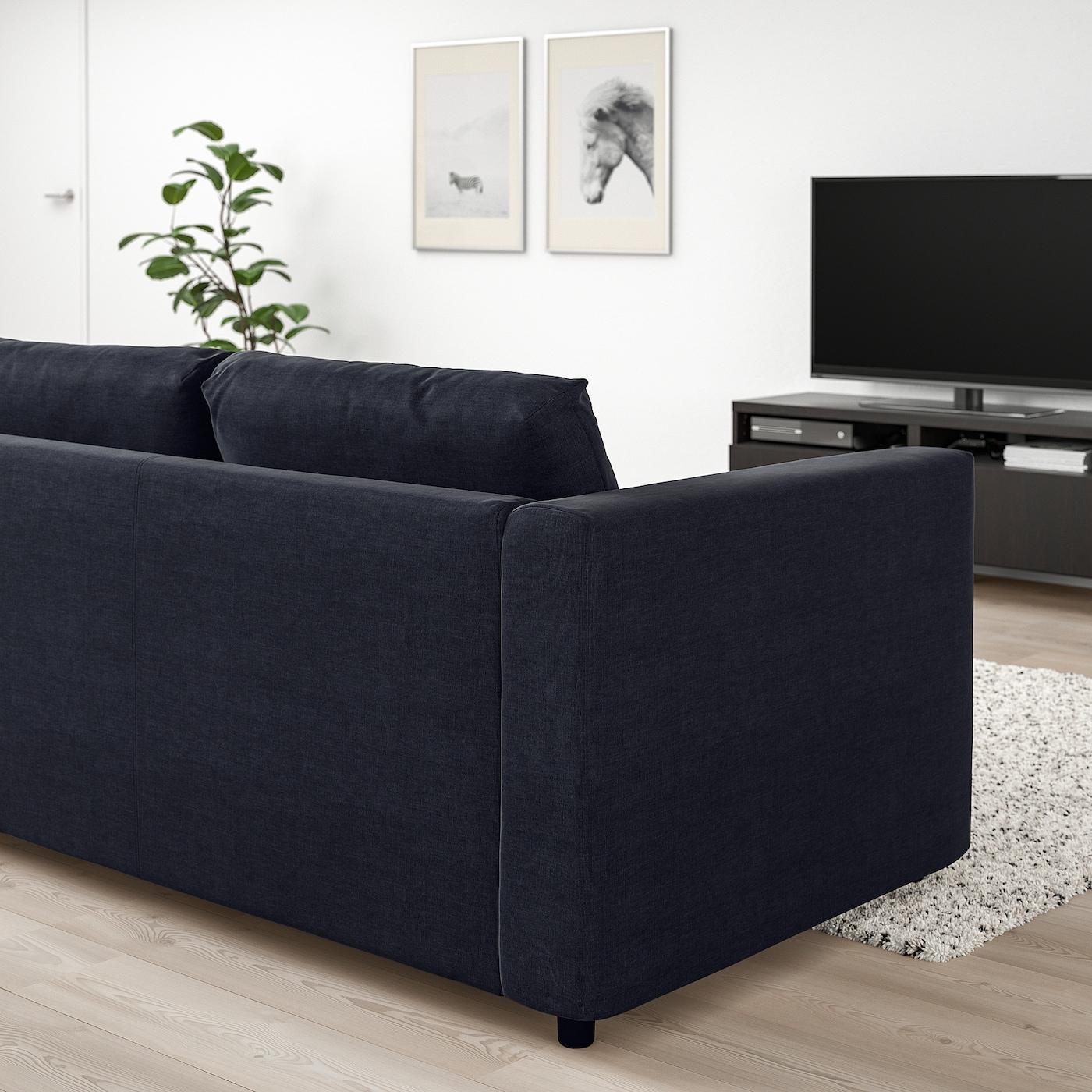 Можно дополнить подголовником ВИМЛЕ, чтобы сделать спинку дивана выше и обеспечить комфортную опору для шеи.