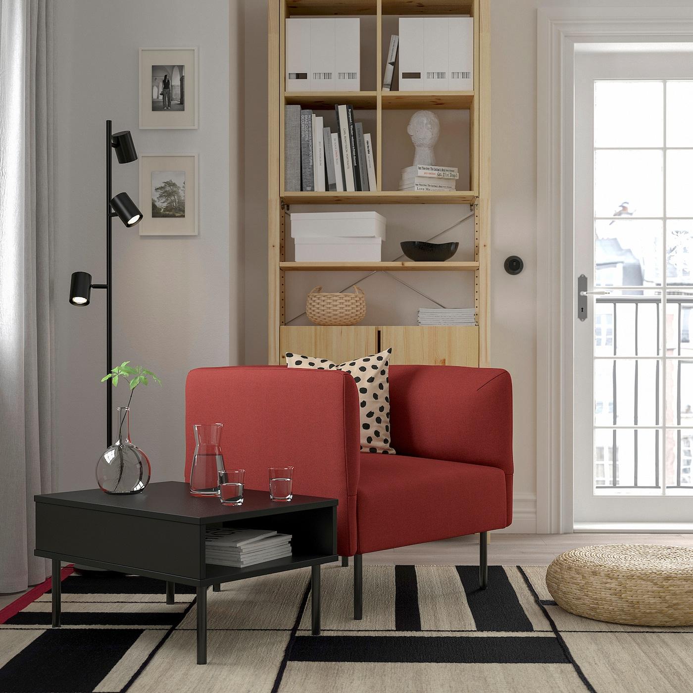 кресло с придиванным столиком, Gunnared коричнево-красный/металлический