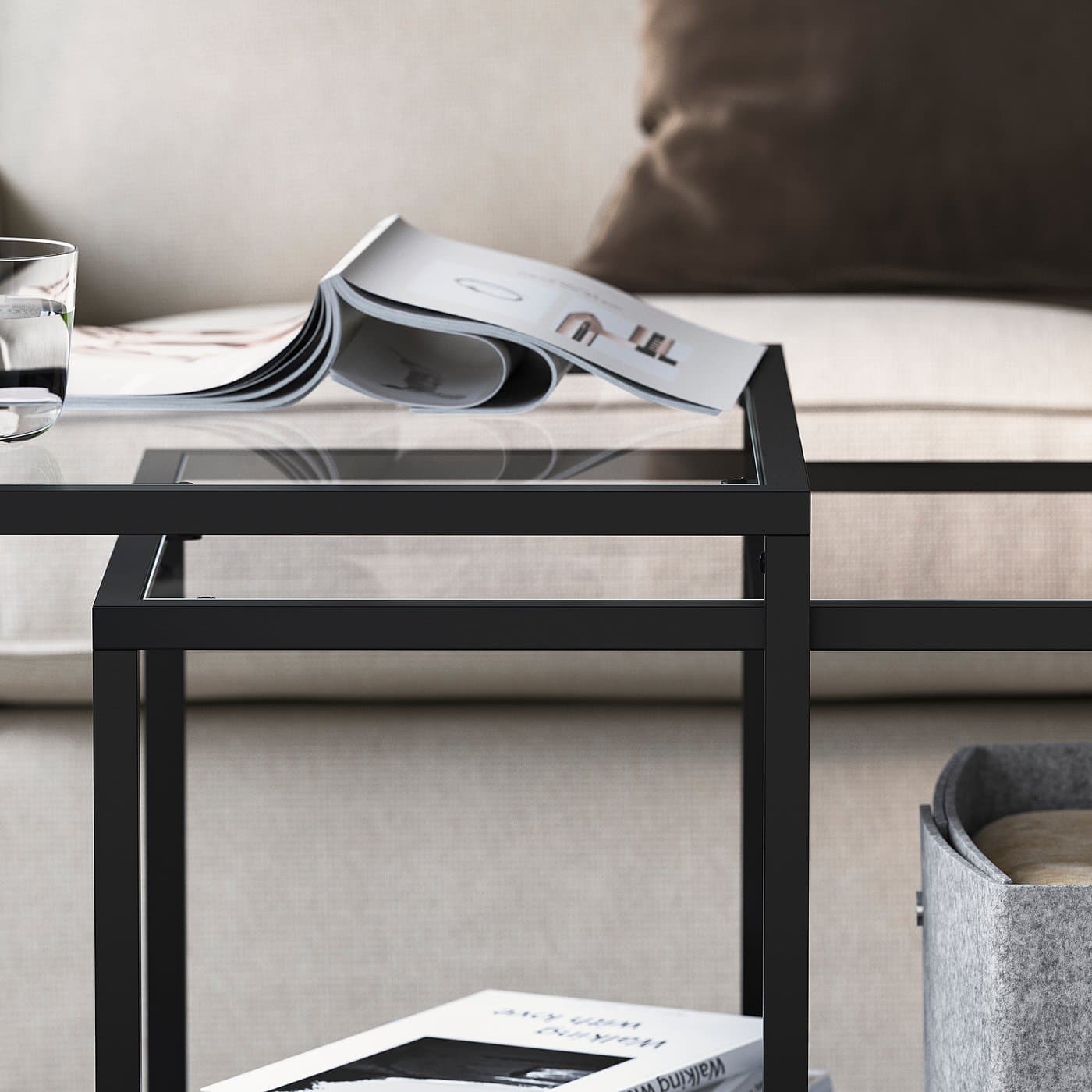 комплект столов, 2 шт, черно-коричневый/стекло, 90x50 см
