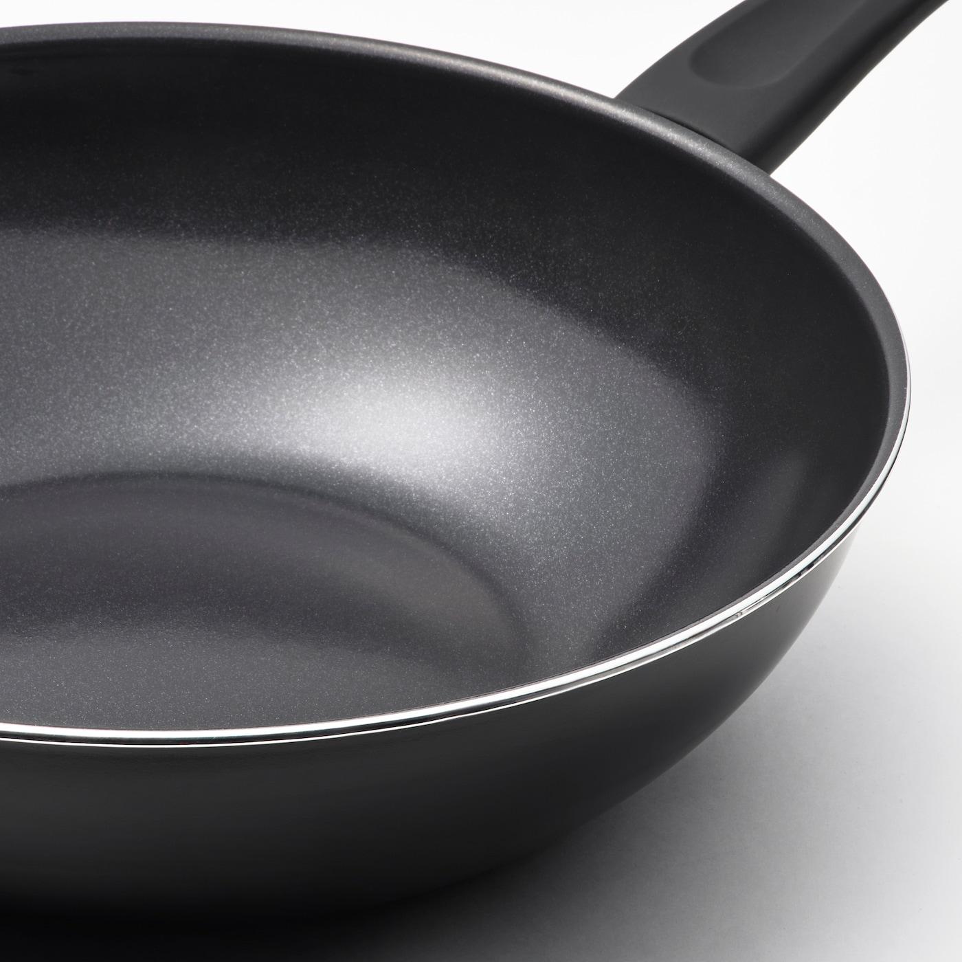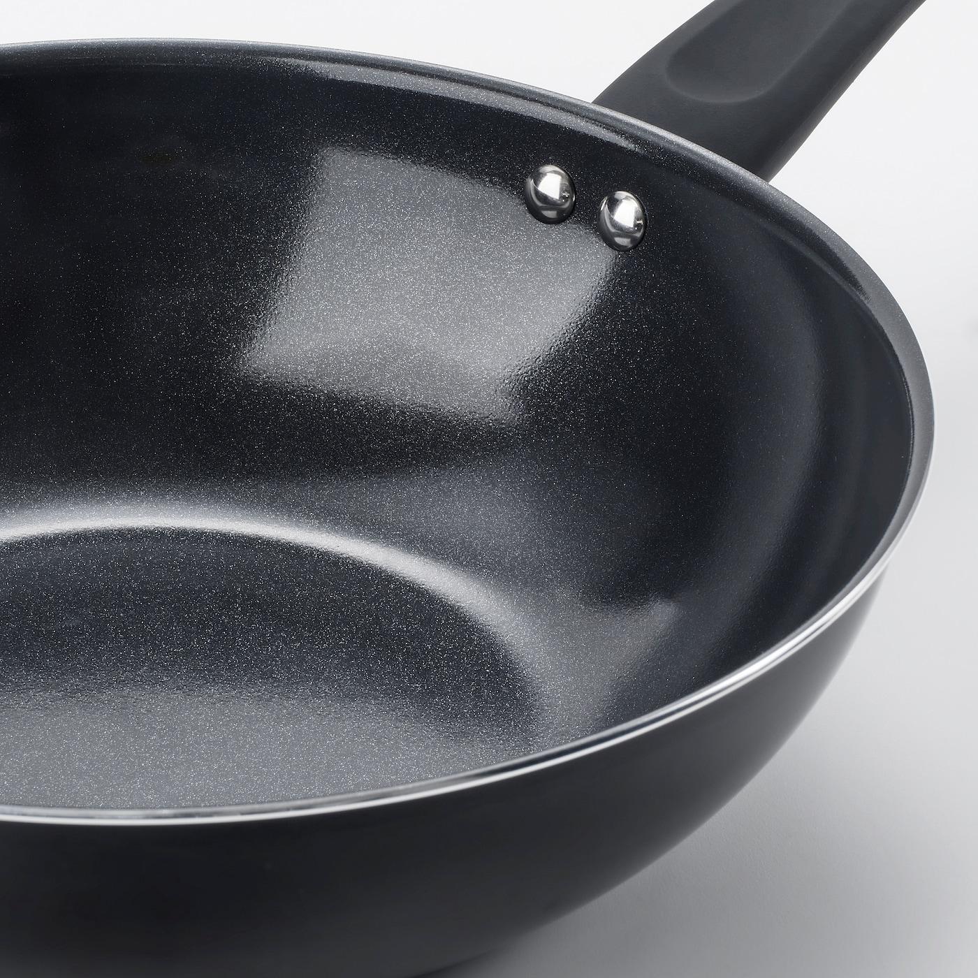Благодаря наклонным стенкам пища попадает на дно, которое нагревается сильнее; для получения хрустящей корочки необходимо тщательно перемешивать.