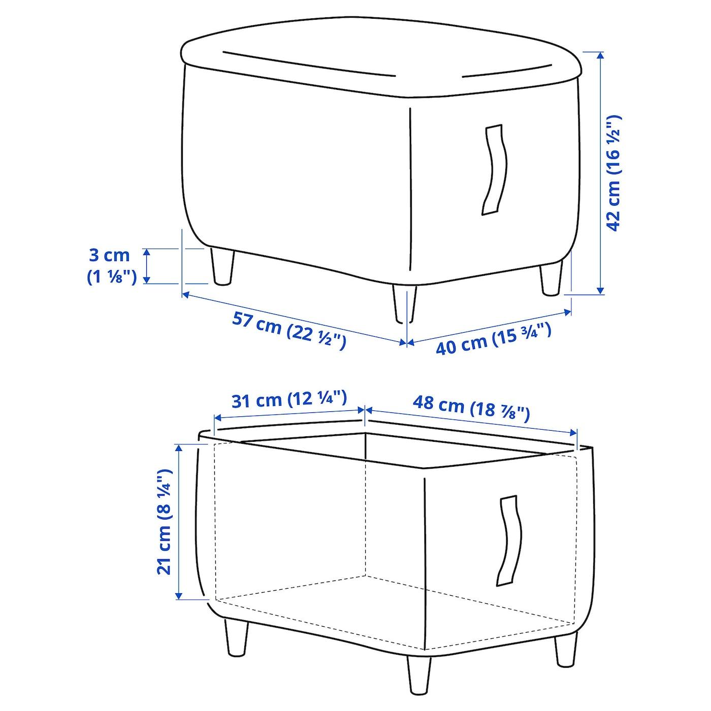 В отделении под сиденьем табурета для ног можно хранить книги, принадлежности для хобби, пледы и другие вещи, которые должны быть под рукой, но не на виду.